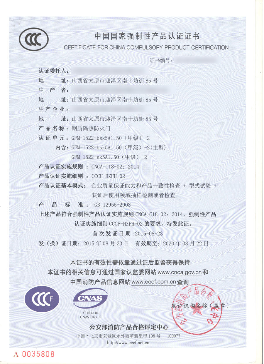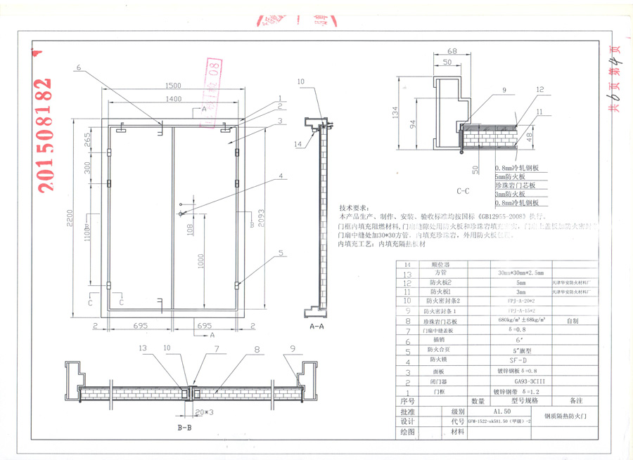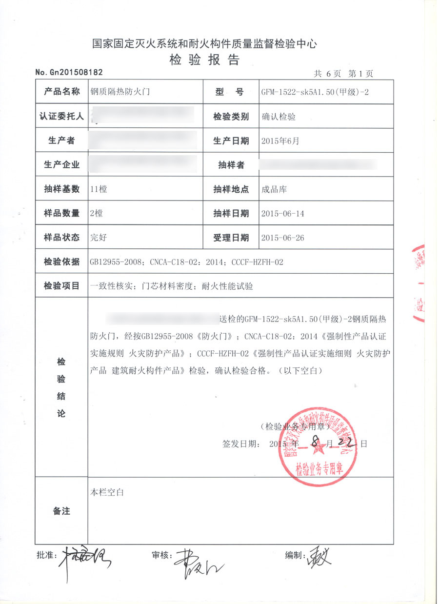 鋼質甲級雙開防火門